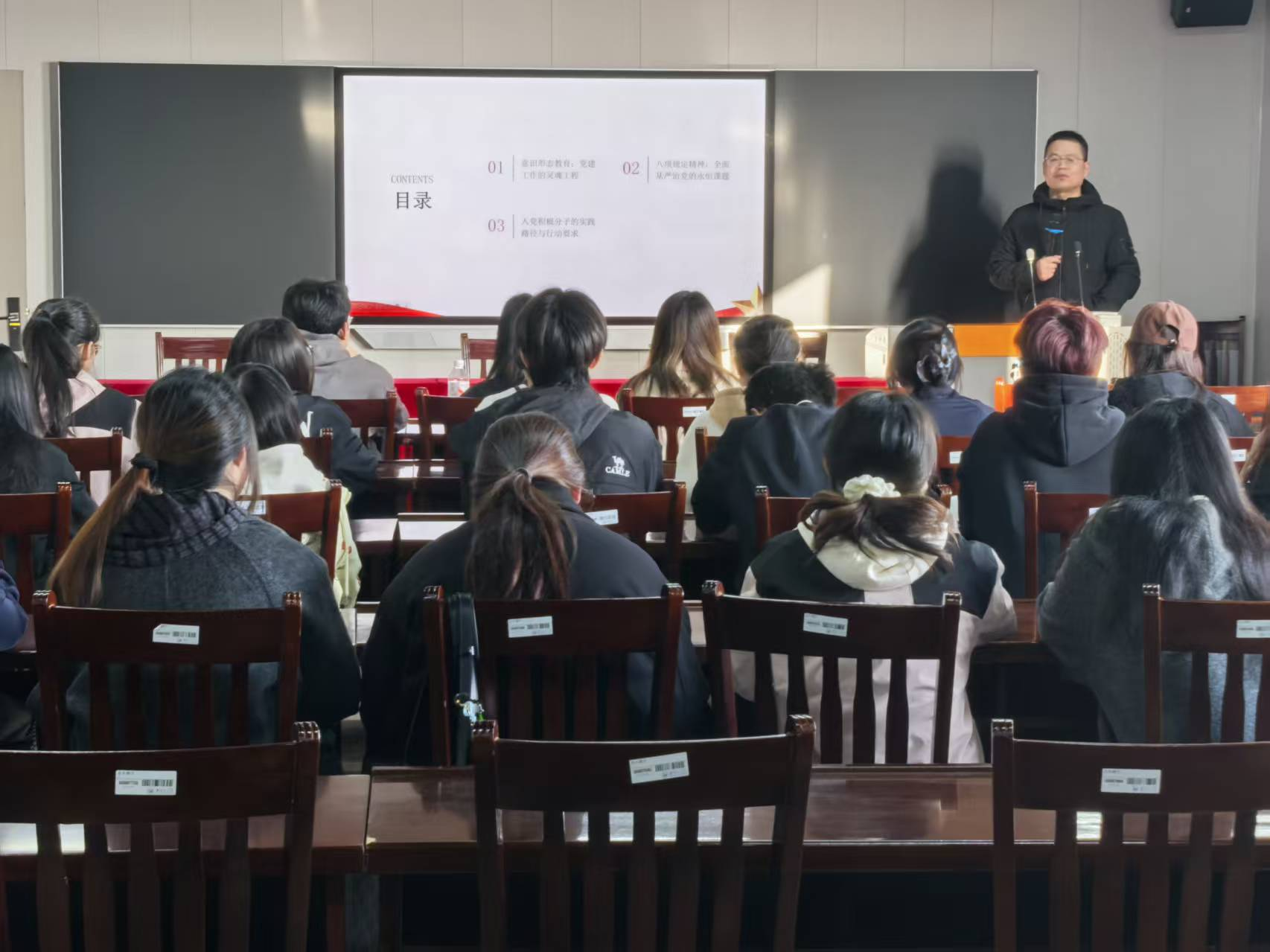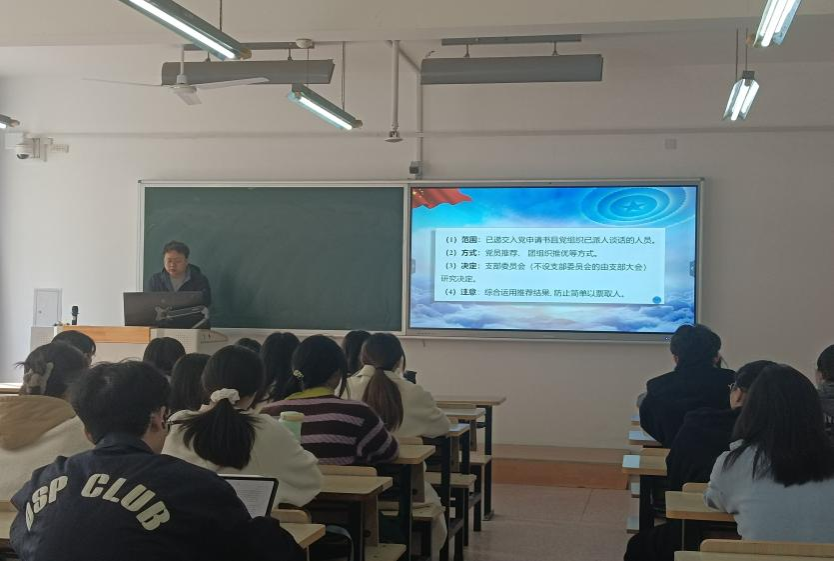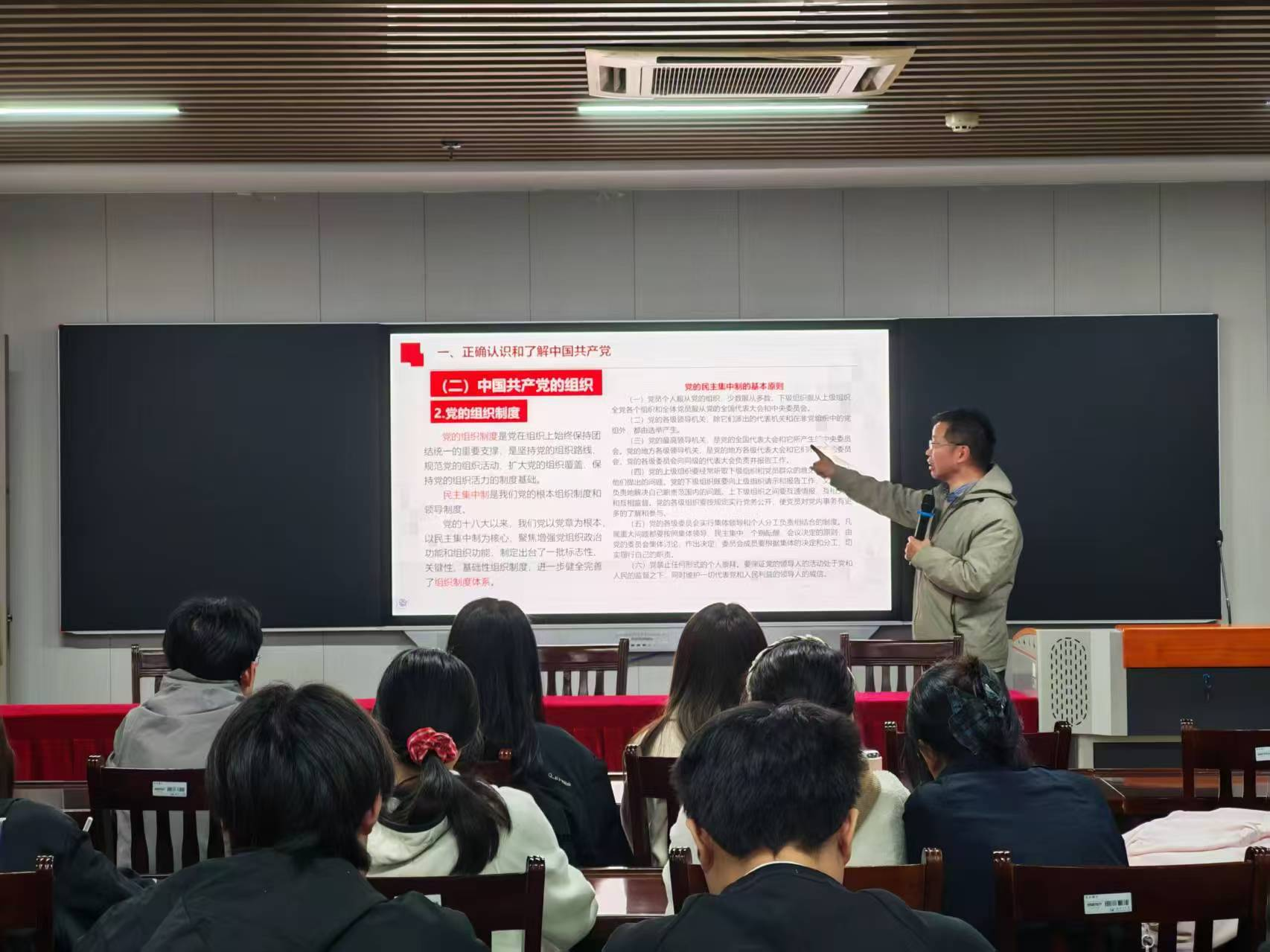 人文与社会科学学院组织员、学生党支部书记刘学详解“中国共产党党员发展流程”,明确发展对象的要求,细化入党各环节、预备党员考察及转正,帮助学生清晰流程、严守标准。
