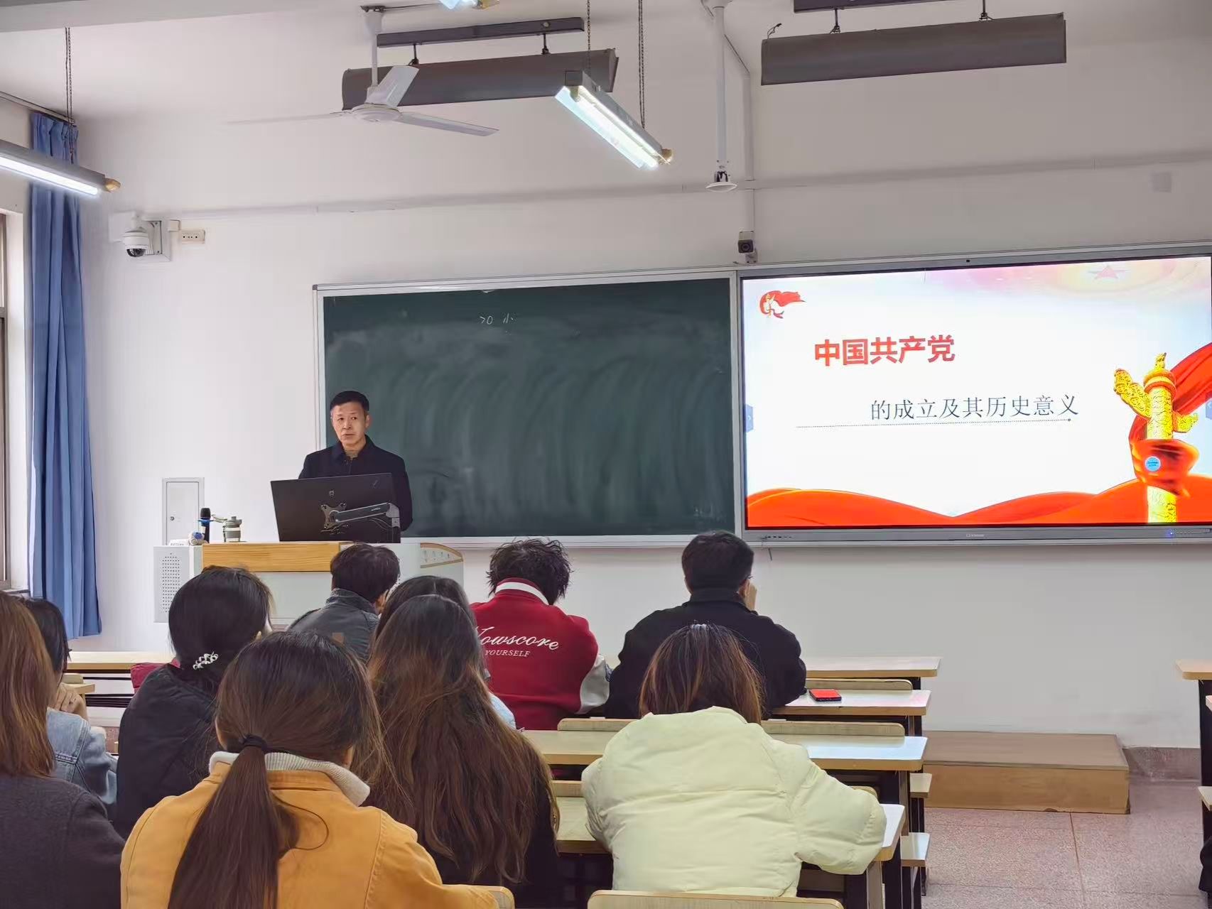 人文与社会科学学院原党委书记郁大海以“中国共产党的成立及其意义”为题,结合党史脉络与影视片段,明晰党的成立背景与伟大意义,激发学生传承红色基因的自觉。