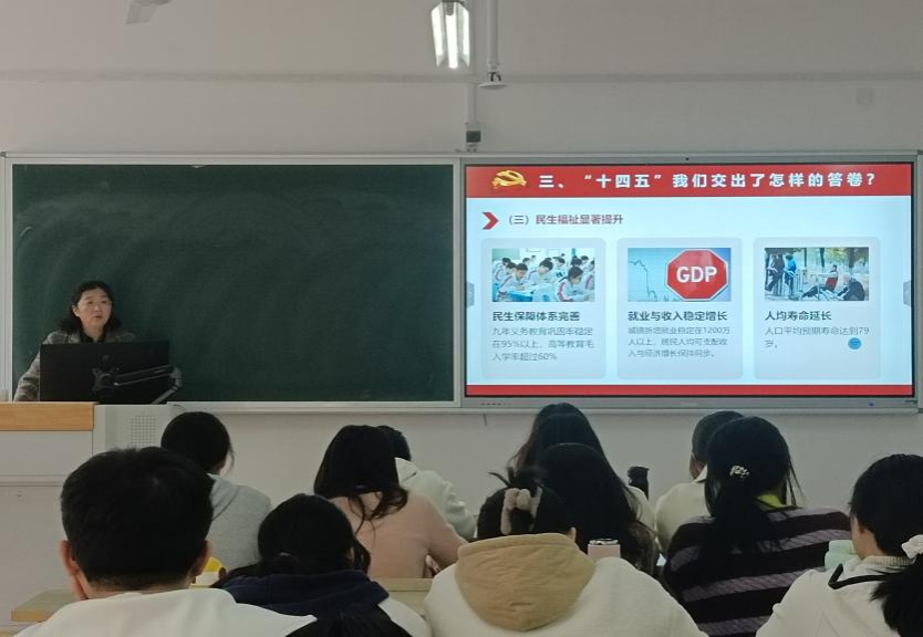 人文与社会科学学院党委书记田萍以“深悟二十届四中全会精神实质,扛起‘十五五’奋进新使命”为主题,梳理“十四五”成果与“十五五”规划要点,解读二十届四中全会精神,引导学生以行动落实会议要求、服务发展。