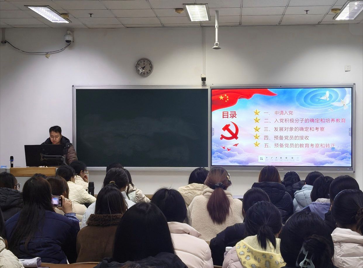 人文与社会科学学院组织员、学生第一党支部书记刘学围绕“中国共产党党员发展流程”展开专题授课。刘学老师紧扣党员发展全流程,从申请入党的基本条件与流程规范、入党积极分子的确定培养、发展对象的考察审查,到预备党员的接收、教育考察与转正等关键环节,进行全面细致的解读。授课中,重点明确了党员发展各阶段的时间节点、材料要求与审核标准,强调政治审查的严肃性与规范性,同时对培养教育、考察谈话等关键环节作出具体要求,帮助入党积极分子清晰掌握党员发展的程序规范,引导大家以严谨态度对待入党各环节,端正入党动机、规范自身言行,为早日成为合格共产党员筑牢基础。