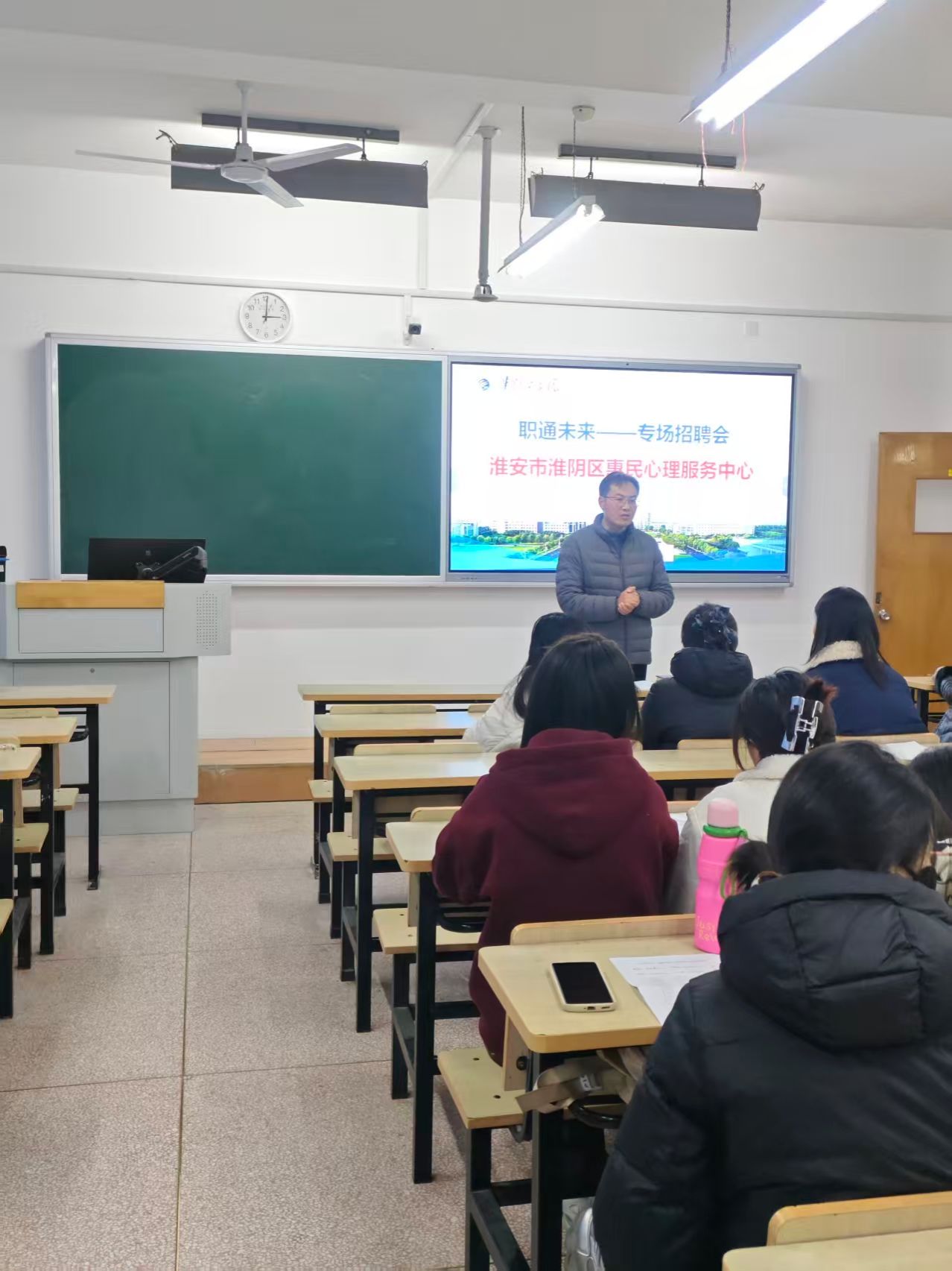 为搭建校企人才精准对接桥梁,凝聚校友力量拓宽毕业生就业渠道,切实推动学生高质量就业,12月9日下午,人文与社会科学学院专场招聘会在尚学楼B107顺利举行。本次招聘会特别邀请我校85级校友张玉芹创办的淮安市淮阴区惠民心理服务中心,为招聘会注入了浓厚的校友情谊与发展动能。