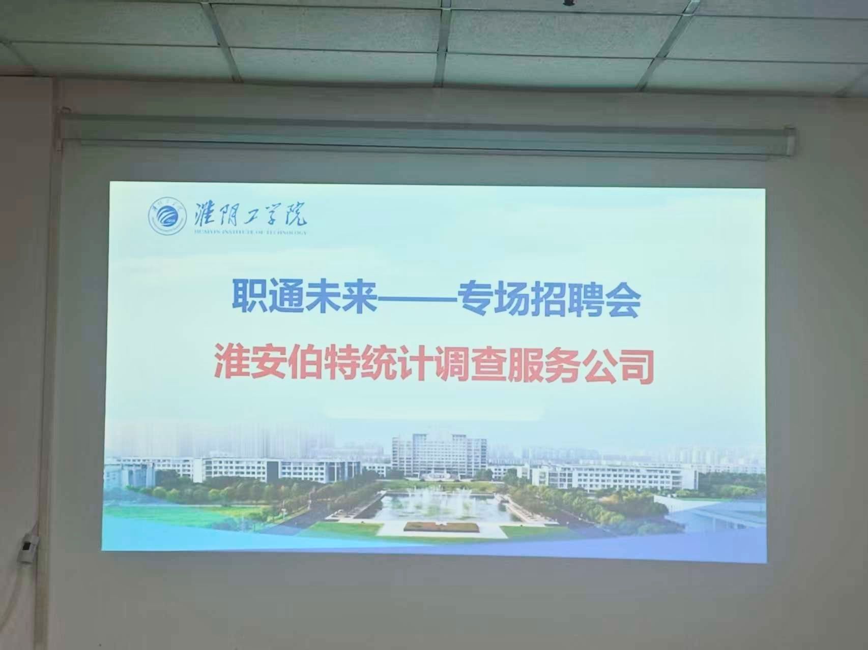 招聘会现场,管永刚代表学院对淮安伯特统计调查服务公司来院进行专场招聘表示欢迎与感谢,希望毕业生找准职业定位,把握就业机会,早日实现就业。随后,淮安伯特统计调查服务公司人事专员向毕业生展示企业发展历程、企业内容、企业方案、团队组成、招聘岗位、晋升途径等内容。同学们踊跃提问,积极投递简历,现场气氛热烈,各位毕业生积极与招聘代表交流,根据专业与兴趣应聘心仪的工作岗位。