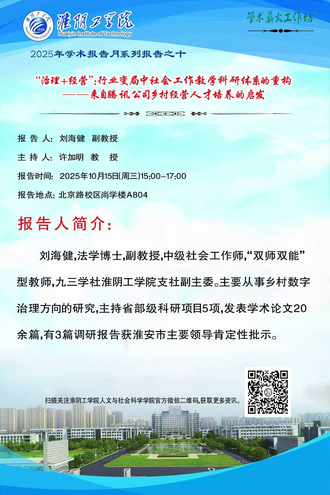 2025年学术报告月系列报告之十---“治理+经营”:行业变局中社会工作教学科研体系的重构
