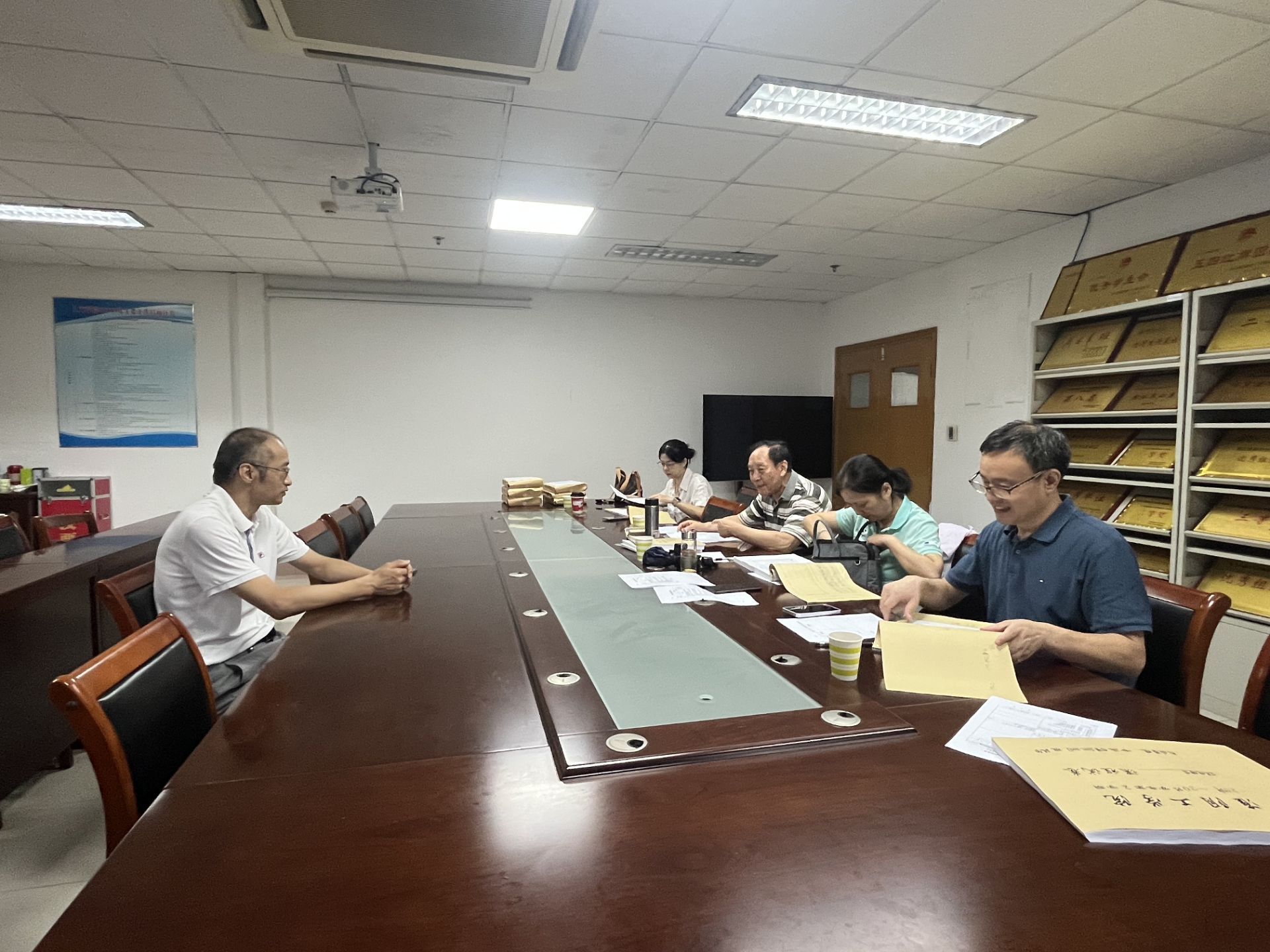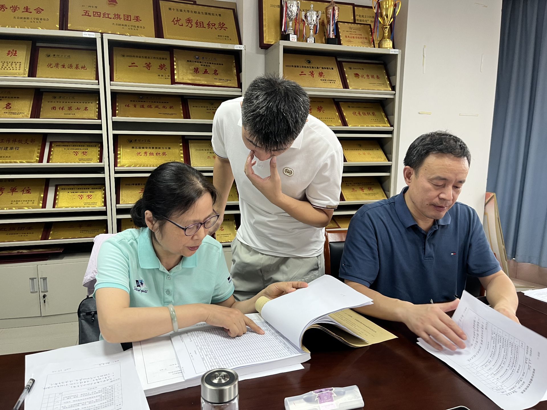 检查组长朱建新教授根据学校专项检查工作安排,对工作任务进行分解布置,专家们从课程教学文件、课程考核材料、毕业论文(设计)这三个方面开展检查,并对检查结果进行现场反馈,学院教学院长、教学秘书及教务员认真聆听反馈意见并做好相应记录。